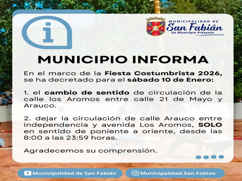 En el marco de la Fiesta Costumbrista 2026, se ha decretado para el sábado 10 de Enero: